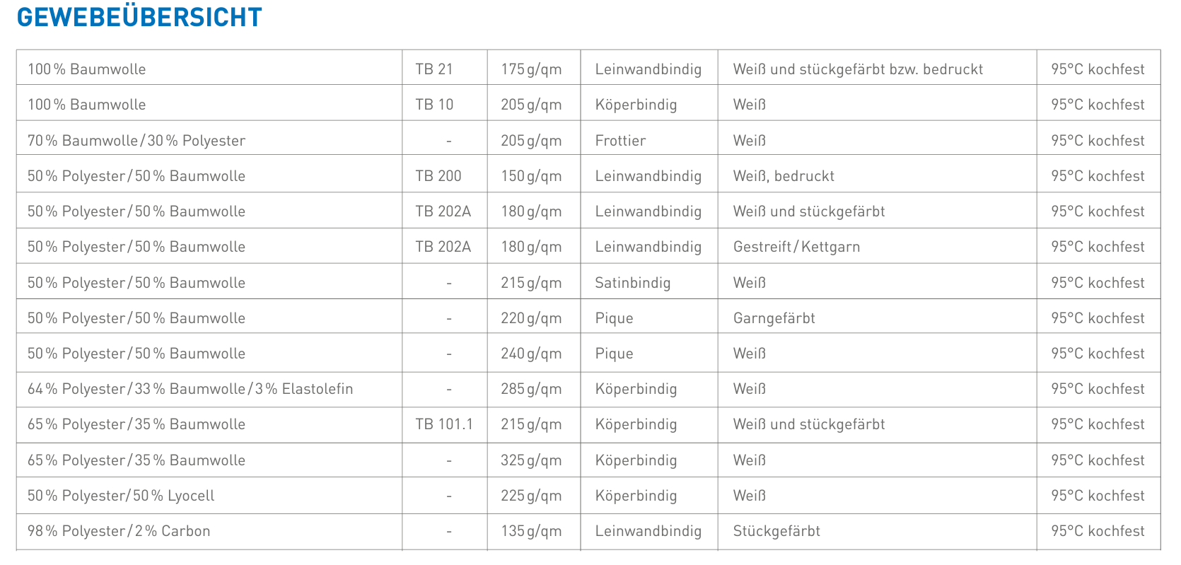 - 50% Polyester / 50% Baumwolle (gem. TB202A/1992)