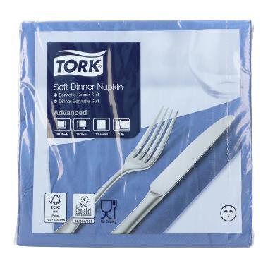 Serviette, Tork, 39x39 cm, blau, 3lg., 1/4 Falz, 100 Stk.